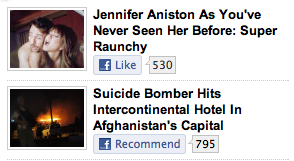 Hm. HuffPoCa must have a "fluffy/serious" option on posts to programmatically display "Like" or "Recommend": http://twitpic.com/5ireml