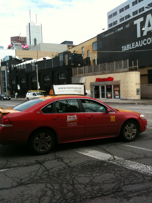 Is this a thing now? Spotted my first Toronto taxi sporting NY-style roof advertising: http://twitpic.com/4zdmnn