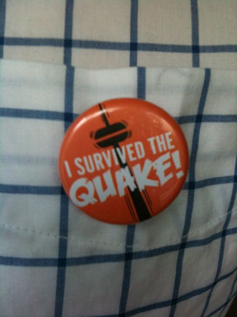 Enjoying my spiffy new "I Survived the Quake!" pin from @spacing: http://twitpic.com/1zdupw