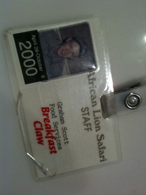 At parents' place, doing some nostalgia-culling. Found my decade-old African Lion Safari employee card: http://twitpic.com/245851