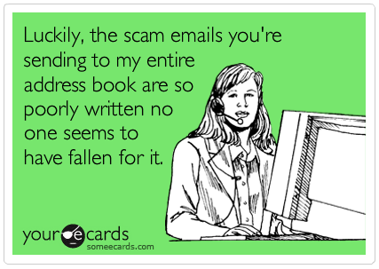 Anyway, I am not in England, "mugged at gunpoint," "with tears in my eyes," asking for $2,450. Lay it on a little thick, huh?
