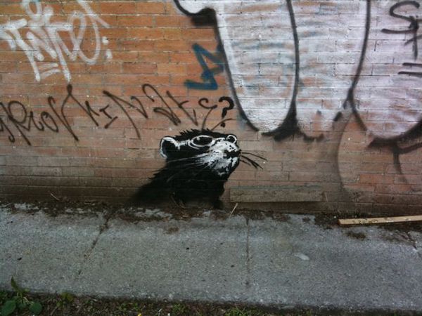 Went and found one of the new Banksy* rats near the office: http://twitpic.com/1mqcid