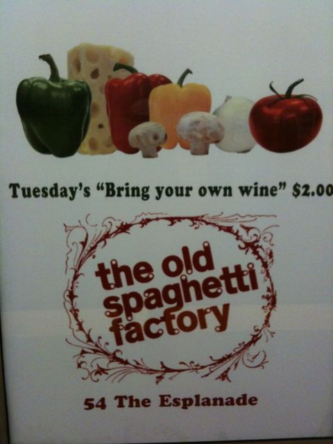 Wow: $2 corkage fee at... The Old Spaghetti Factory. Classy! http://twitpic.com/mfhk0