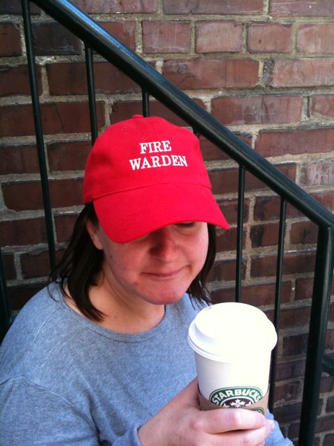 Fire drill! @nerdygirly takes charge: http://twitpic.com/i1s6y